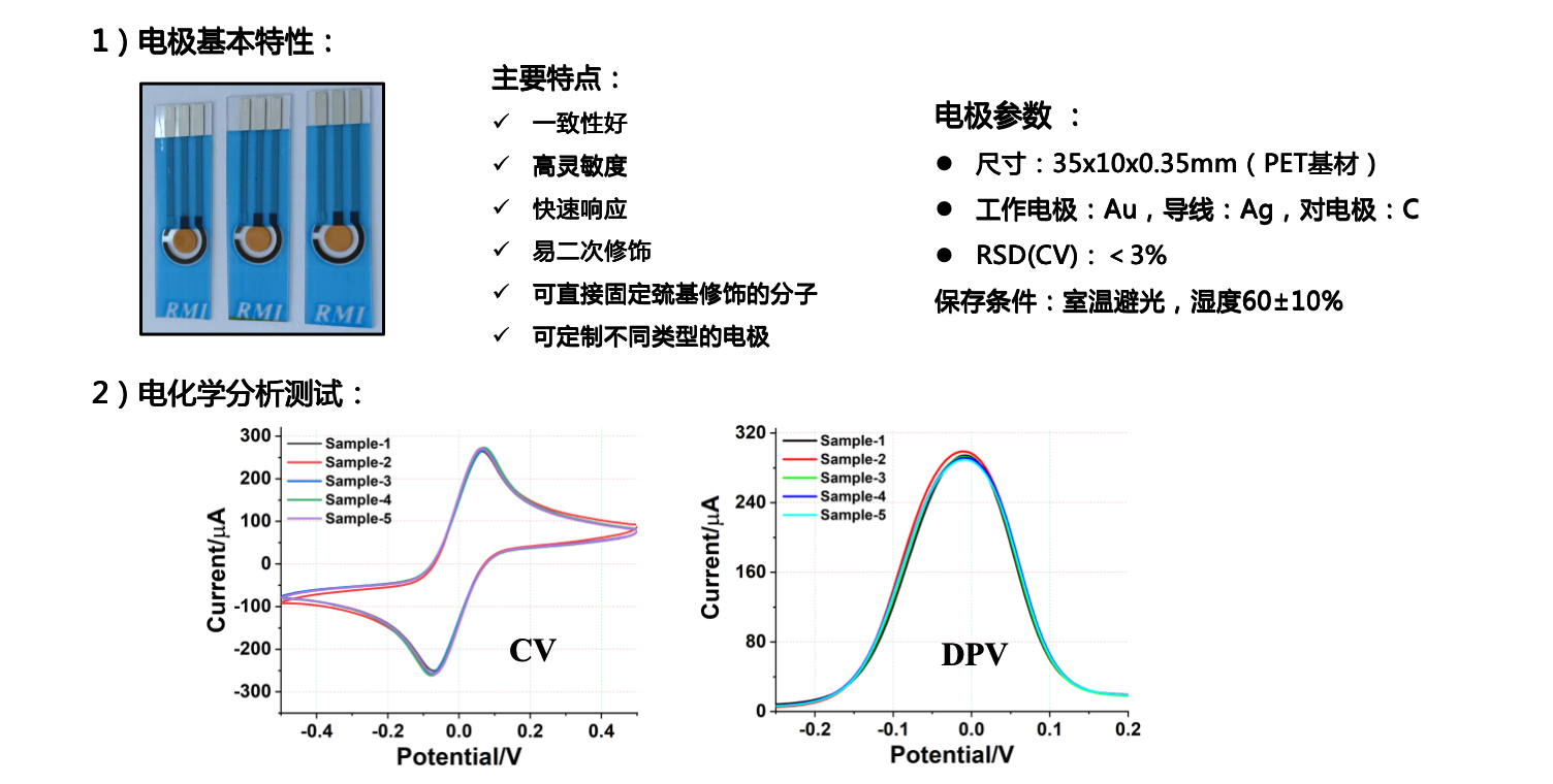 简介: 电极应用场景:电极用于制备免疫传感器、核酸传感器、酶传感器和气体传感器等,对动植物中特定化学物质、汗液、土壤和气体等进行分析。